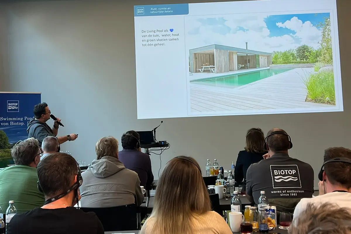 Begin november reisden wij af naar Wenen voor het jaarlijkse Biotop Partnertreffen. Dit jaar was extra bijzonder: Biotop, wereldmarktleider op het gebied van natuurlijke zwembaden, vierde haar 40-jarig jubileum. Vier dagen lang kwamen meer dan 120 partners uit heel Europa samen om kennis te delen, inspiratie op te doen en de mooiste projecten van het jaar te presenteren.