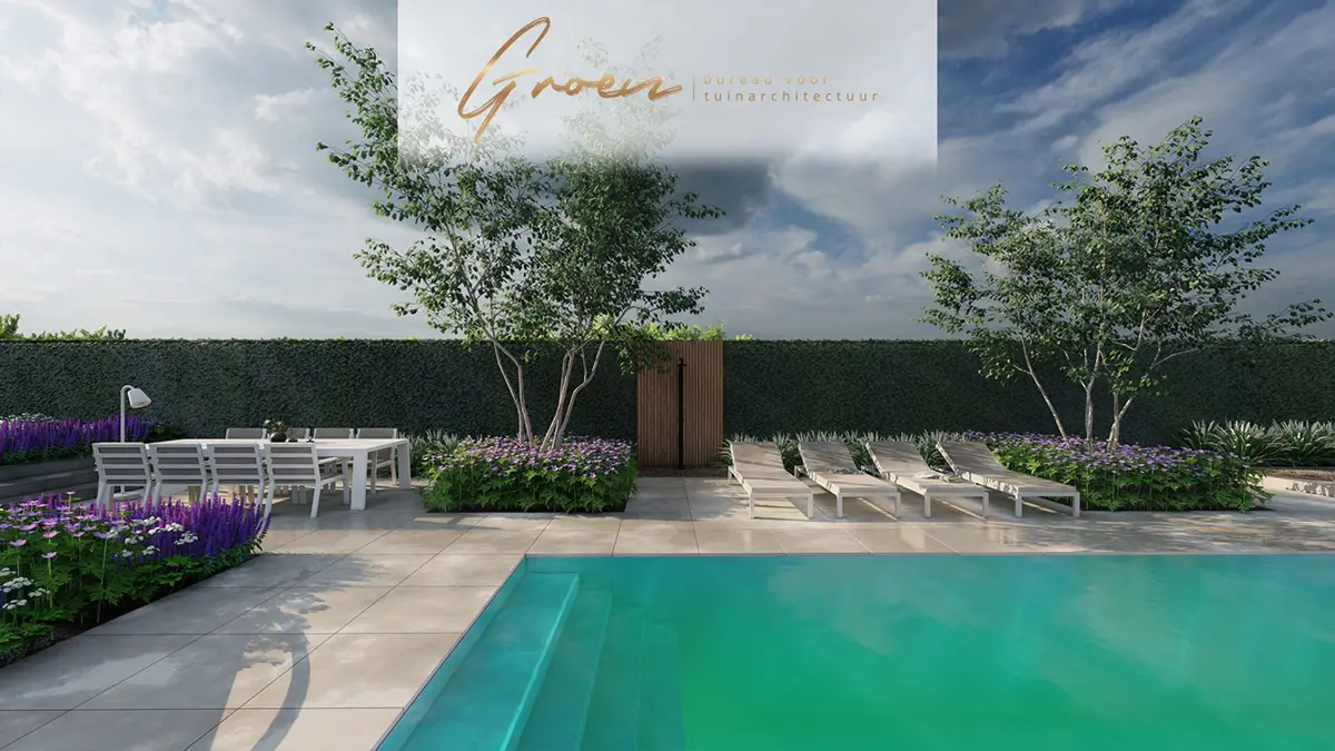 Het eindresultaat is een luxe lounge tuin waarin elk detail klopt: stijlvol, functioneel en volledig afgestemd op het leven buiten. Dankzij het slimme gebruik van hoogte, materialen en beplanting ontstaat een rustige tuin waarin het zwembad, de loungeplek en het groen elkaar versterken. Privacy, ontspanning en luxe zijn hier perfect in balans gebracht.