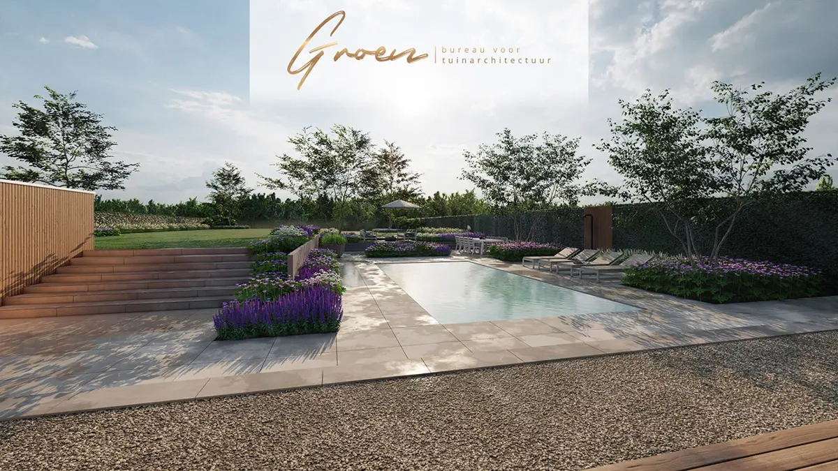 Een luxe lounge tuin, dat was de wens van deze klant: een stijlvolle buitenruimte met zwembad, volop privacy én ruimte voor groen. Geen overvolle tuin vol verharding, maar juist een rustige, luxe omgeving waarin ontspannen centraal staat. Bindels Buiten Beleving vertaalde deze wensen naar een doordacht ontwerp met hoogteverschillen, natuurlijke materialen en slimme oplossingen voor opbergruimte én zichtlijnen.