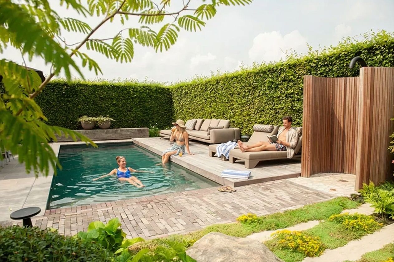In onze inspiratietuin laten we je het Biotop-water zelf beleven. Helder, zacht en volledig in balans, zonder chloor of chemie.
