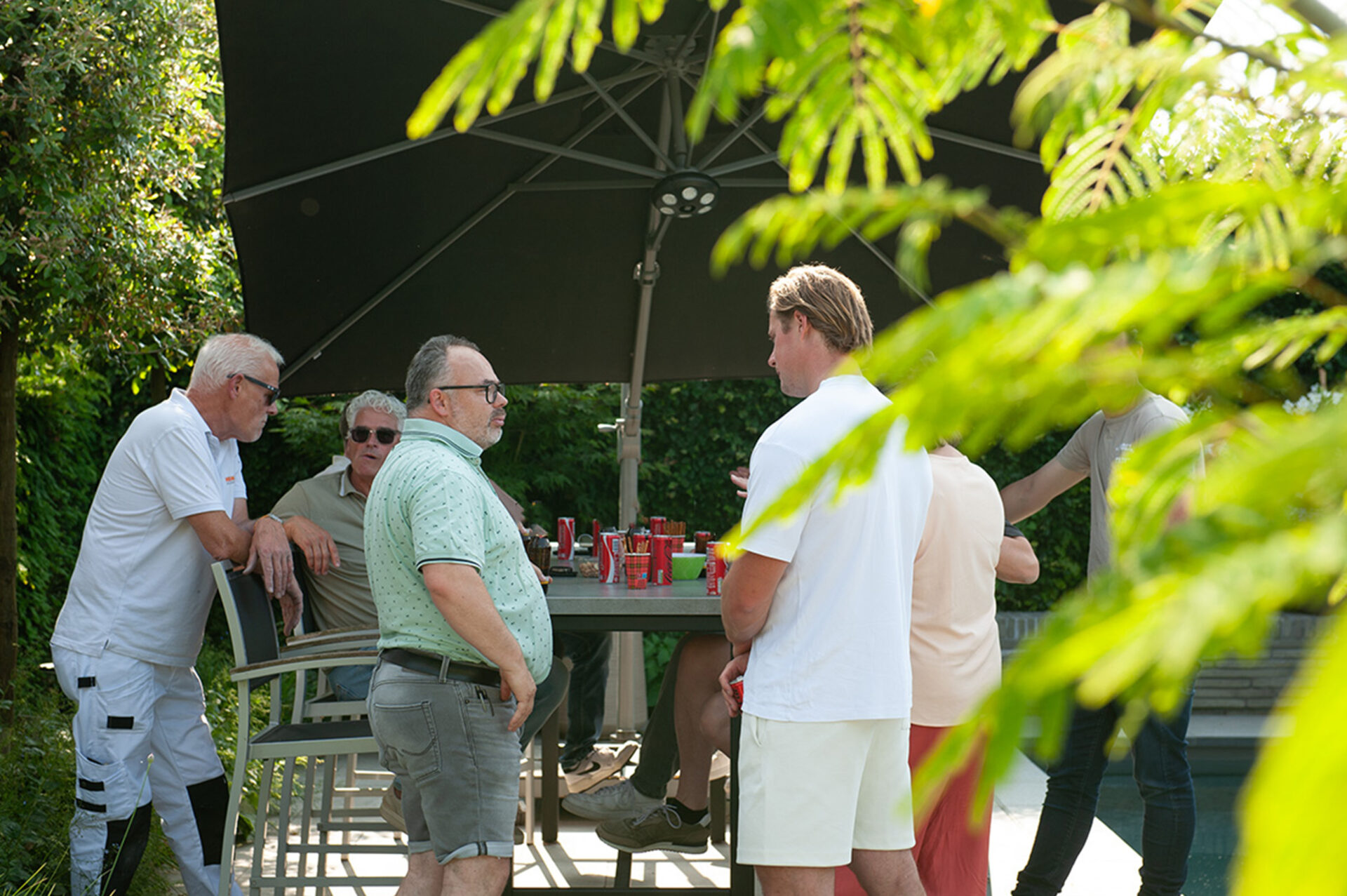Een aantal keer per jaar maken we de borrel extra bijzonder met een verzorgde BBQ van Hovenier Kookt.