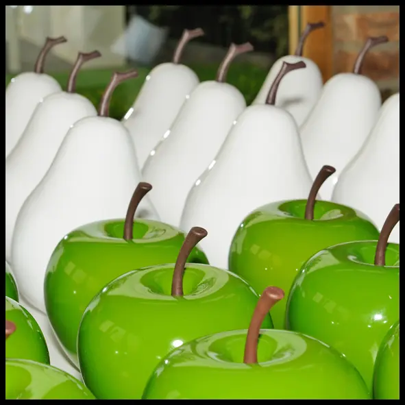 Wat een leuke fruitjes. Deze appeltjes en peertjes kunnen gewoon buiten worden neergezet. Ook tijdens de winter kunt u ze laten staan. Maar ook binnen zullen ze zeker een leuke decoratie vormen in uw woonkamer.